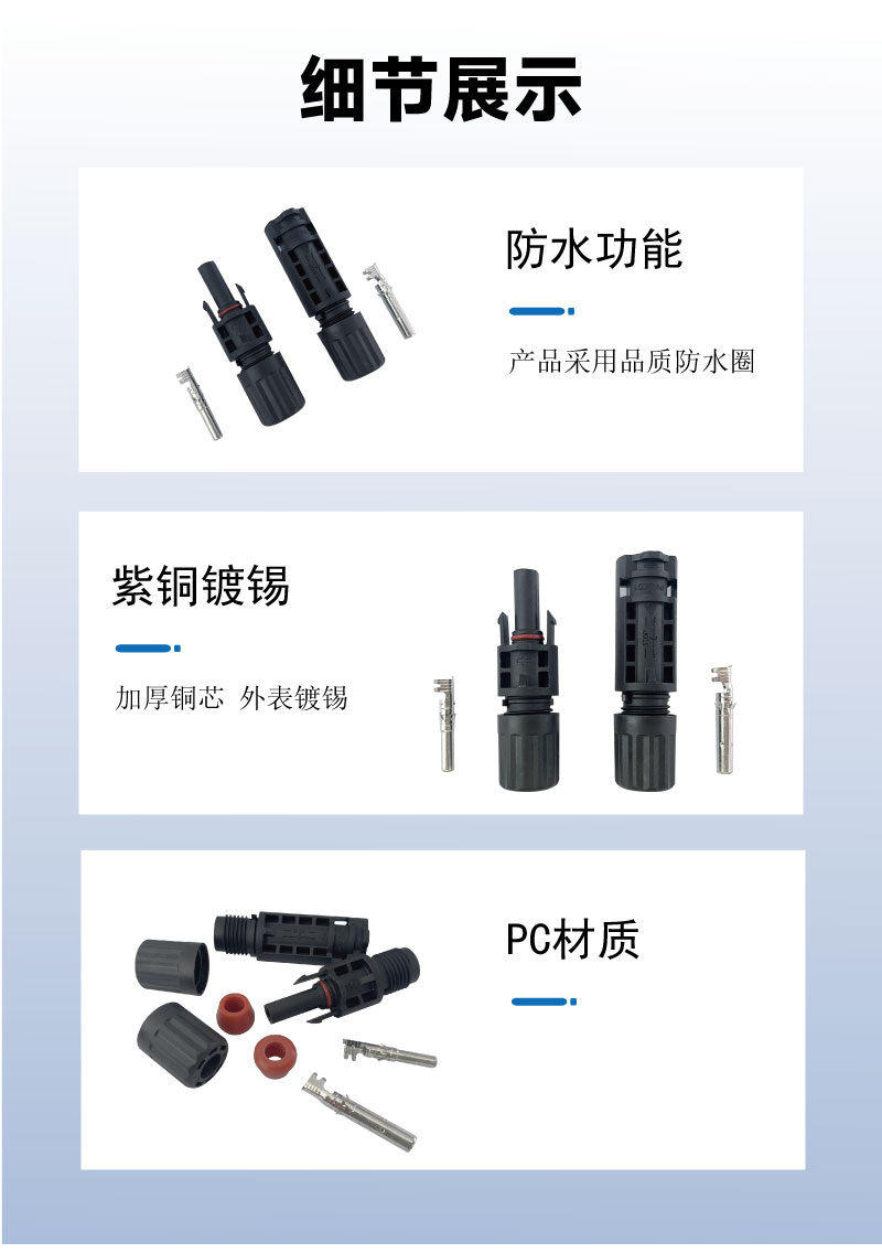 MC4光伏連接器1500V公母插頭太陽(yáng)能組件電池板組件 光伏板連接器