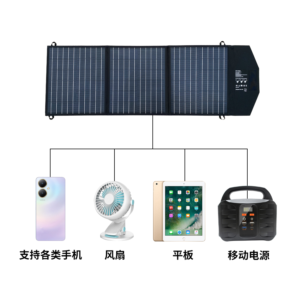 60W便攜太陽(yáng)能折疊包,戶外充電小幫手